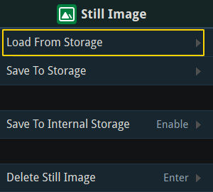 * When using a USB flash drive, connect the USB flash drive to the USB HOST port. - [MENU] button > “Still Image” > “Load From Storage” > select “Still Image”, and press the [VALUE] knob.