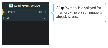 - Use the [VALUE] knob to select the loading destination for the still image (Still 1–32), and press the [VALUE] knob.