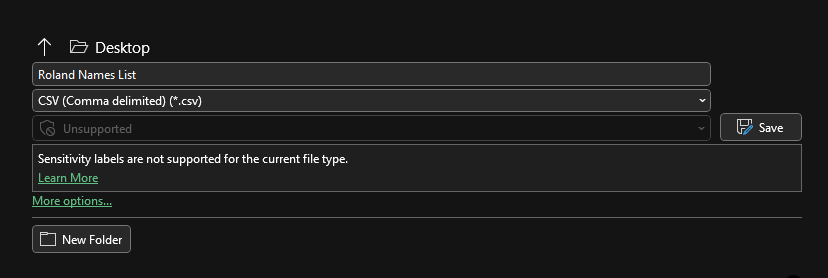 After creating your spreadsheet, you will want to save the file as a .CSV.