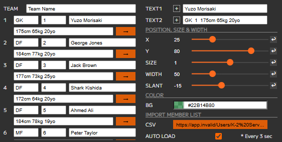 Using the orange arrows by each name can trigger the specific name in the .CSV file to be sent to the graphic.